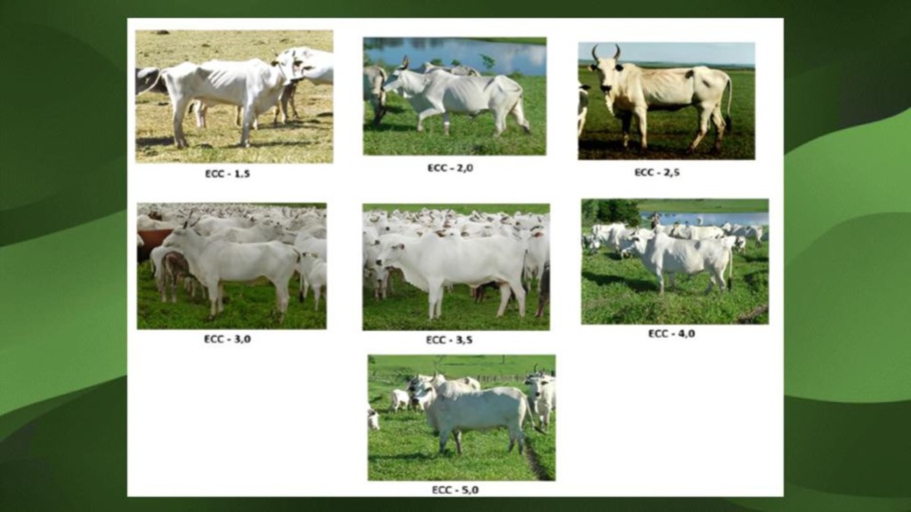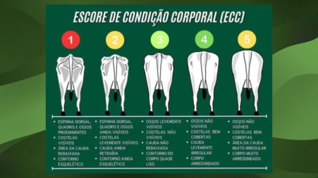 O escore de condição corporal (ECC) é o indicador do status energético e das reservas corporais da vaca:
